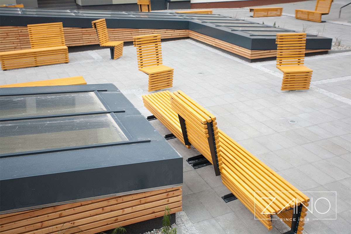 Nous cherchons constamment à proposer un mobilier urbain non seulement agréable à l’œil mais surtout fonctionnel et répondant aux enjeux de l’aménagement urbain contemporain. Notre gamme de mobilier urbain modulaire Flash permet d’aménager les espaces publics selon leur caractère et les besoins de la collectivité. Cela favorise une ambiance conviviale dans la ville et une utilisation optimale de l'espace. Le banc de rue Flash 02.325 est constitué d'une structure en acier noir ou en inox et d'une assise et d'un dossier composés des lattes de bois assurant le confort de l'usager. Le client a le choix entre le bois de pin, d’épicéa ou, en option, le bois exotique. Le modèle présenté diffère des autres variantes du fait de son dossier placé à droite, pour une personne uniquement. La place à côté peut servir pour poser, par exemple, un sac de courses dans un centre commercial. Ce banc urbain s’intègre harmonieusement avec les autres bancs de la ligne « Flash » pour créer des configurations appropriées à vos besoins.