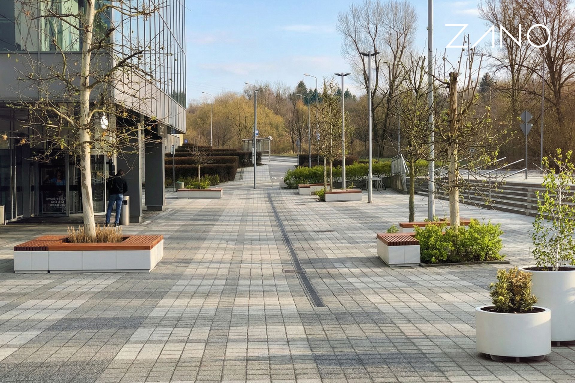 La série Quadro est un système modulaire de bancs et de pots, idéal pour créer de grandes compositions dans les espaces urbains. Le banc Quadro 02.476 est un modèle sans dossier, d'une longueur de 180 cm, correspondant à trois sièges 02.176 ou trois pots 06.076.S. La structure du banc est en acier et le siège est en planches de bois.