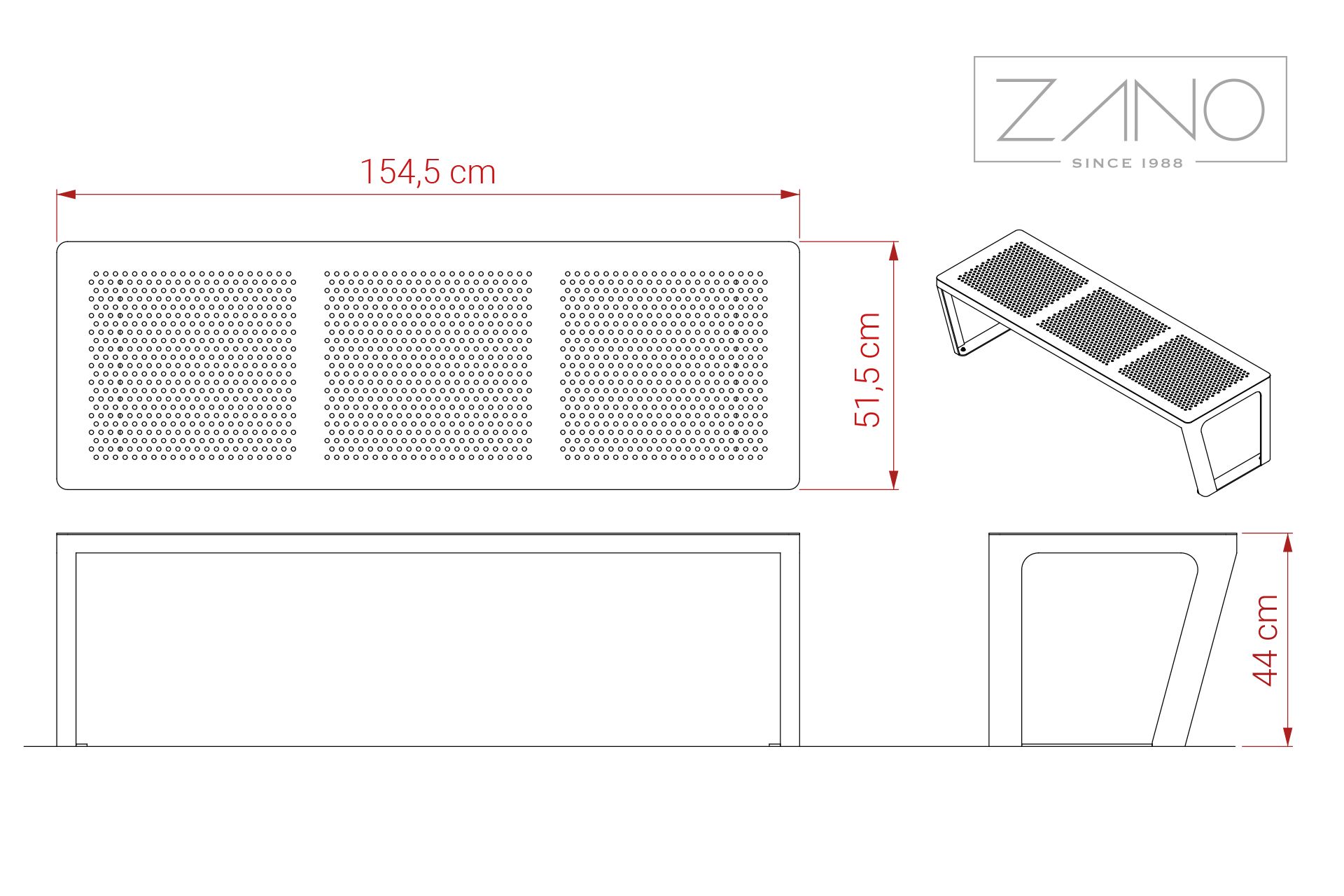 Banc Scandik en version sans dossier. Le banc est doté d'une assise en tôle perforée. Le matériau de construction est l'acier inoxydable ou l'acier au carbone, galvanisé et peint dans la couleur RAL spécifiée par le client. Le banc Scandik a été conçu pour les aménagements paysagers modernes : patios d'immeubles de bureaux, parcs, promenades, rues, immeubles de bureaux et gares. La gamme de produits Scandik comprend : des bancs, des poubelles, des pots pour arbustes et arbres, des tables, des sièges et une station solaire.