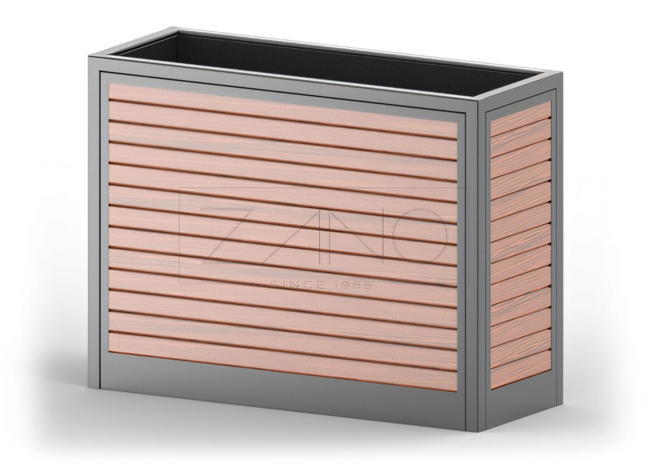 Tout comme les autres produits de la ligne Salver, la jardinière rectangulaire 06.038 se démarque par son aspect contemporain et élégant et son caractère polyvalent. Elle a été conçue pour les aires de restauration dans les centres commerciaux et les aéroports. Ce bac d’orangerie peut servir à délimiter différentes zones composant une aire de restauration, en fonction de vos besoins. Le bac à fleur Salver est fabriqué en matériaux de haute qualité ; sa structure est disponible en acier au carbone ou inoxydable et ses parements sont composés de lattes de bois européen ou exotique. Cette jardinière rectangulaire saura sans doute s’intégrer dans les bâtiments à l'architecture contemporaine.