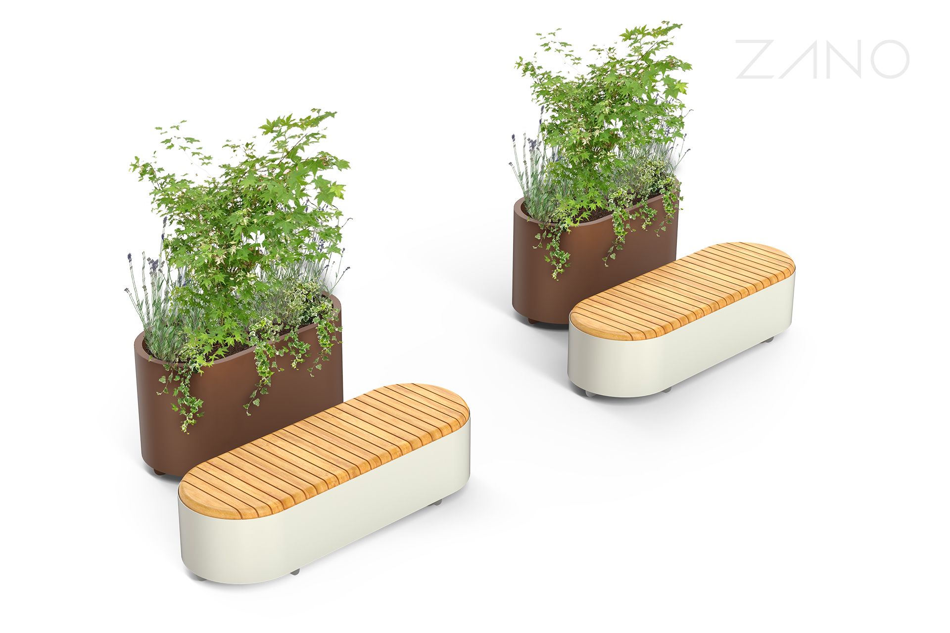 Les jardinières Universe sont disponibles en quatre tailles, de S à XL. Les hauteurs du banc et du pot de la ligne Univers sont les mêmes, ce qui les rend très complémentaires.