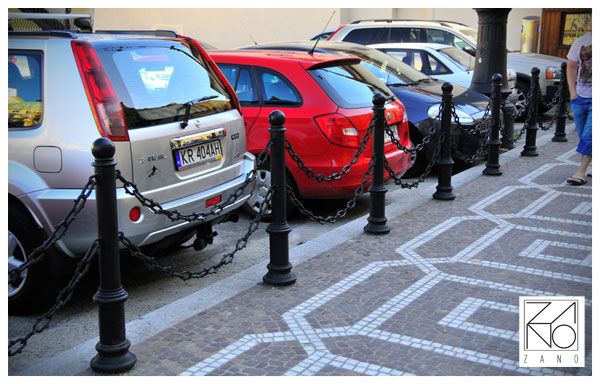 Deux types de chaînes de raccordement aux bornes de rue sont disponibles : la chaîne classique Koral et la chaîne décorative Solid. Selon vos besoins, il existe cinq options pour configurer une borne avec des chaînes. Option un - borne sans chaînes (version par défaut), option deux - borne avec un anneau pour chaîne, option trois - borne avec deux anneaux pour chaîne des deux côtés de la borne, option quatre - borne avec double attache de chaîne d'un côté, option cinq - borne avec double attache de chaîne des deux côtés de la borne. L'illustration ci-dessous montre un exemple de borne Bene.