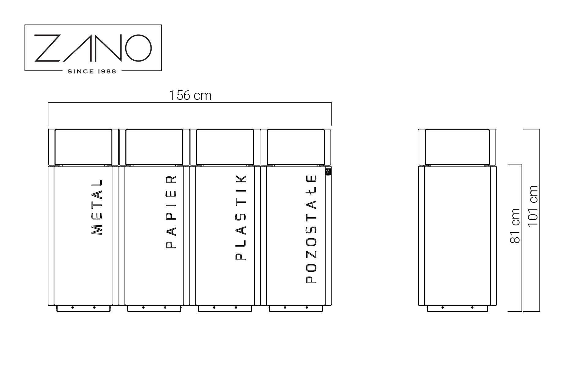 Le poubelle de recyclage 15.448.1 est une construction pliée en carbone ou en acier inoxydable. Ouvert par le haut, équipé d'inserts internes. Personnalisation possible sur demande - option acier noir, revêtement par poudre dans n'importe quelle couleur RAL, inscriptions en acier découpées, collées ou, dans le cas de l'acier inoxydable, gravées. Montage du poubelle : à visser. Le poubelle présente une forme simple et moderne - vous pouvez choisir des options avec ou sans toit. Des variantes à chambre unique et à chambres multiples sont disponibles.