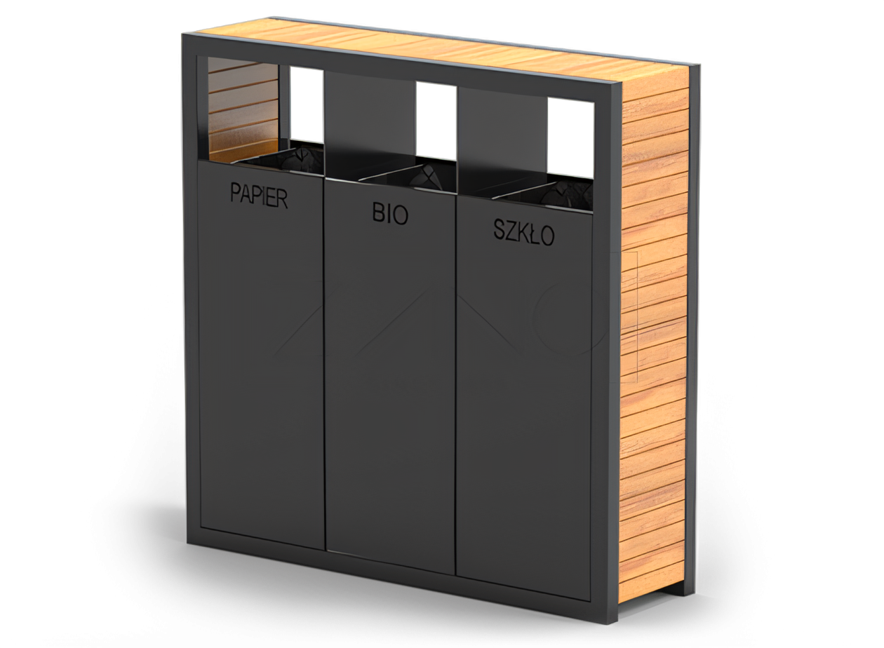 Marquée par un caractère très moderne, la poubelle pour tri sélectif Pavo 15.063 a été conçue pour mettre en valeur le paysage urbain contemporain. Elle se distingue sans doute par ses parements en lattes de bois qui, associés à l'acier, créent un effet de contraste très intéressant. Le bois lui confère aussi un aspect chaleureux. Grâce à son chapeau pare-pluie, cette poubelle à tri sélectif peut vous servir aussi bien à l’intérieur qu' à l’extérieur. Sa structure est disponible en acier noir ou inoxydable, au choix. Rappelons que l'inox garantit une haute résistance à la corrosion et aux intempéries et n'exige pas de travaux de conservation très fréquents. La corbeille de tri sélectif Pavo est munie de trois compartiments clairement marqués (inscriptions) pour le verre, les emballages, et le papier. Chaque compartiment dispose d'un bac intérieur en acier galvanisé. La poubelle Pavo peut être fixée au sol par visserie ou laissée en pose libre pour servir à l’intérieur. Cette poubelle de tri sélectif 3 compartiments facilitera des gestes éco-citoyens au sein de votre collectivité.